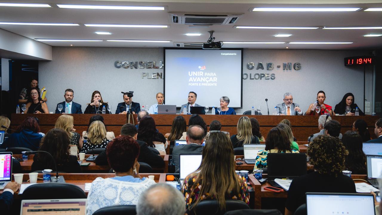 11/03/2026 - As Conselheiras e os Conselheiros Seccionais realizaram a primeira reunião do Conselho Pleno deste ano, nesta segunda-feira (23), no auditório da Seccional Mineira. A sessão foi conduzida pelo Presidente da OAB-MG, Gustavo Chalfun, com a apreciação de pauta extensa de três processos disciplinares e oito administrativos, com a exclusão de 5 advogados dos quadros da Ordem. Foram aprovadas a ampliação da parceria com a OABPrev, a criação de honrarias e novo Estatuto da CAAMG.